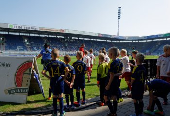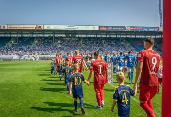 Einmal mit den Profis auflaufen dürfen....ein Traum, der für die jungen Fußballspieler der F - Junioren (F1) am 31.08.2019 im Rostocker Ostseestadion Wirklichkeit wurde. Erst das Warten im Tunnel, dann raus auf das Spielfeld, Blitzlichtgewitter und schließlich der große Auftritt unter dem Jubel der Zuschauer. All das erlebten die Kinder unter den Augen ihrer stolzen Eltern beim Spiel des FC Hansa gegen Preußen Münster.