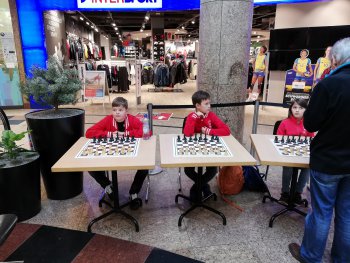 Es sollte sich doch lohnen für unsere Jüngsten, vormittags spielten sie in der Schülerliga, der Sieg ging allerdings an die Schweriner. Am Nachmittag dann, trafen wir uns zum Simultanschach im Schlossparkcenter, das den Abschluss einer Schachwoche (organisiert von den Schachfreunden Schwerin) bildete. Kaum angekommen, konnten wir dort alle Platz nehmen. Ole, Nina, Maximilian, Lenny, Ben, Uta und Lorenz spielten gleichzeitig gegen die beiden ungarischen Großmeister Csaba und Jozsef Horvath. In spannenden Partien behielten sie aber die Oberhand. Zum Schluss gab es Autogramme und ein gemeinsames Foto. Dieses Erlebnis behalten wir in bester Erinnerung.